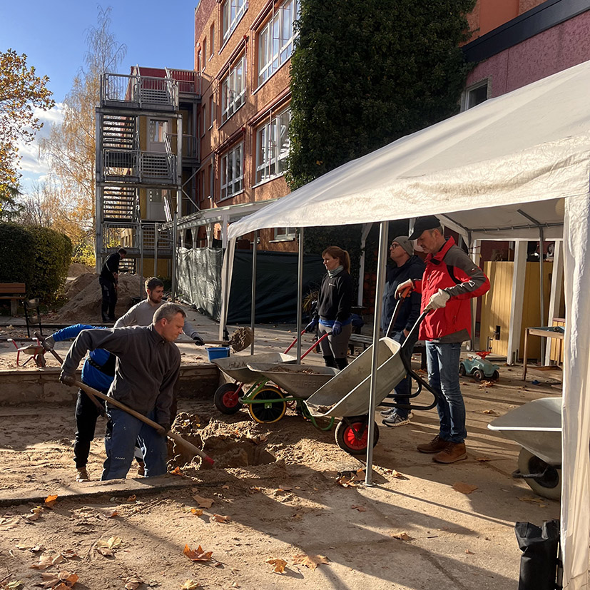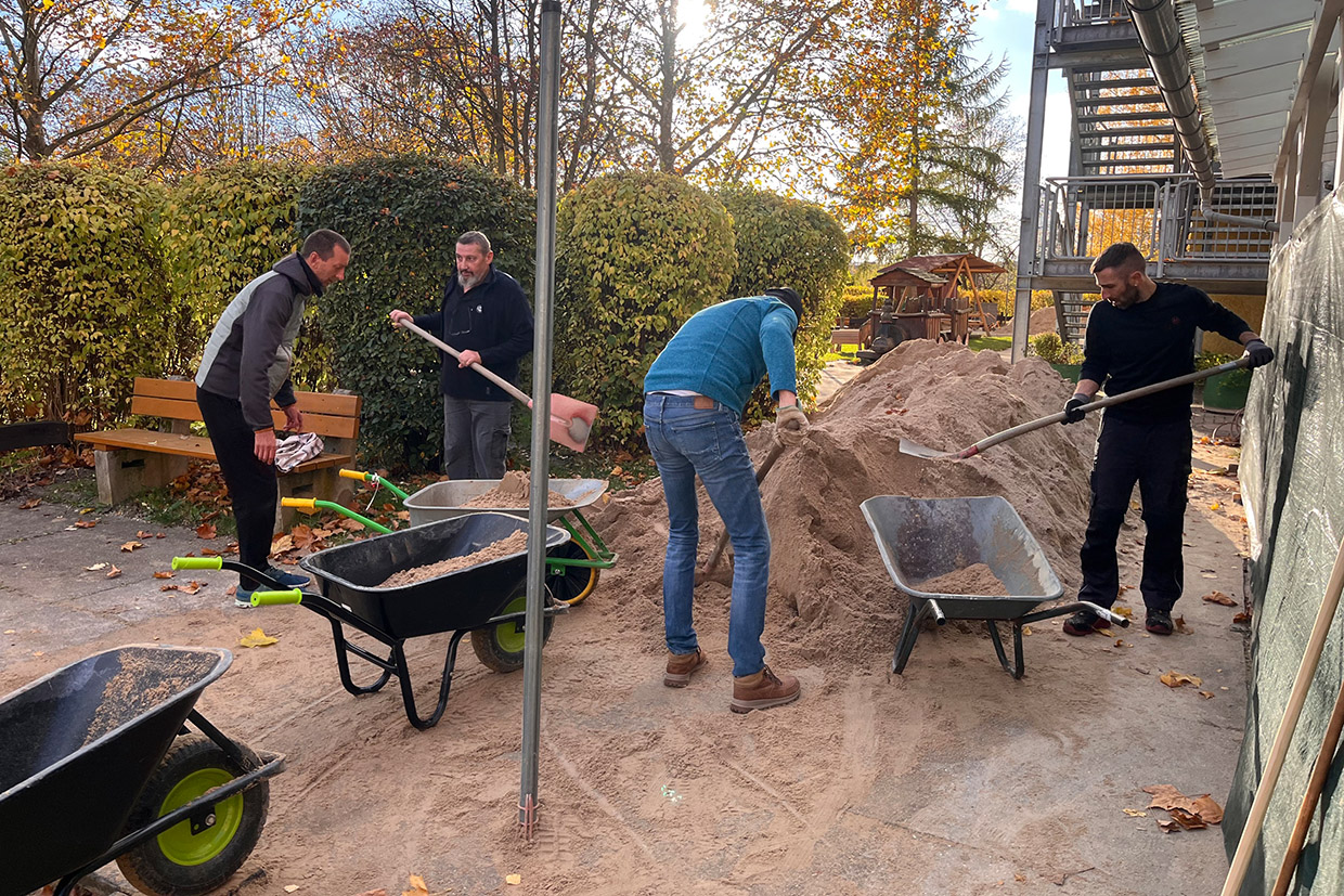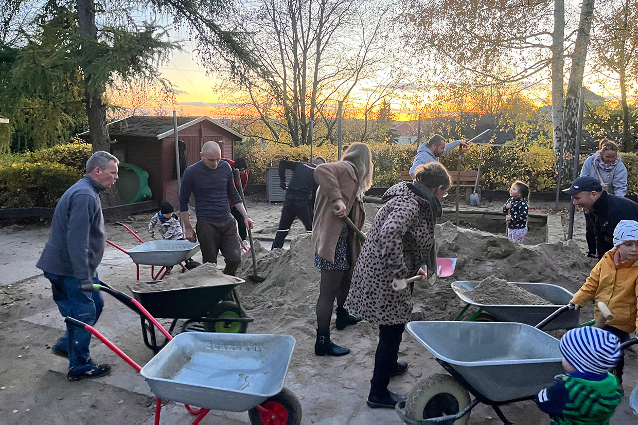 Die Kita Am Schreberweg beschloss den Oktober mit einem Arbeitseinsatz. Gemeinsam mit den Eltern hat das Team der Kita alles gegeben: fast 60 Tonnen Sand wurden bewegt, Laub beseitigt, Möbel aufgebaut und noch so einiges mehr. Mit so viel Herz, Energie und Gemeinschaftssinn haben wir unsere Kita zum Strahlen gebracht. Miteinander- Füreinander. Tausend Dank – Ihr seid großartig!